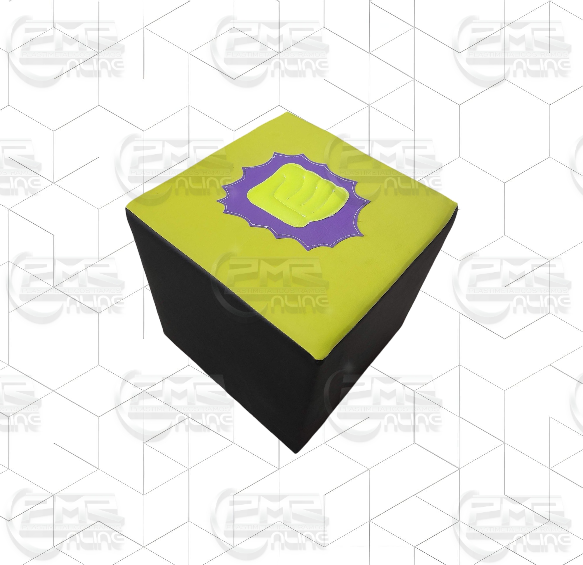 Puff animado esqueletado en madera sajo, espuma poli Flex densidad 26 y forrado en cuerotex.